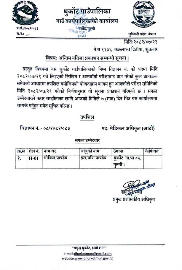 अन्तिम नतिजा प्रकाशन सम्बन्धि सूचना । (वि.नं. ०८/०८२/८३