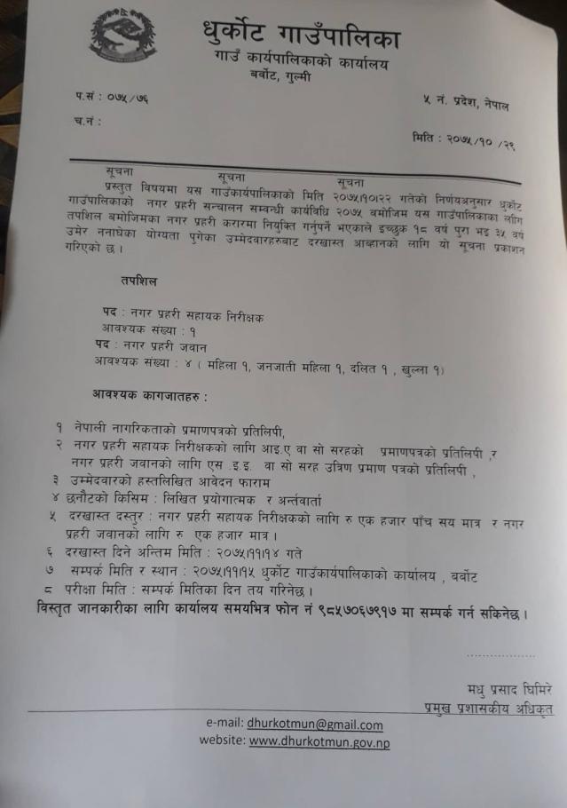 नगर प्रहरी करारमा नियुक्ती सम्बन्धी सूचना