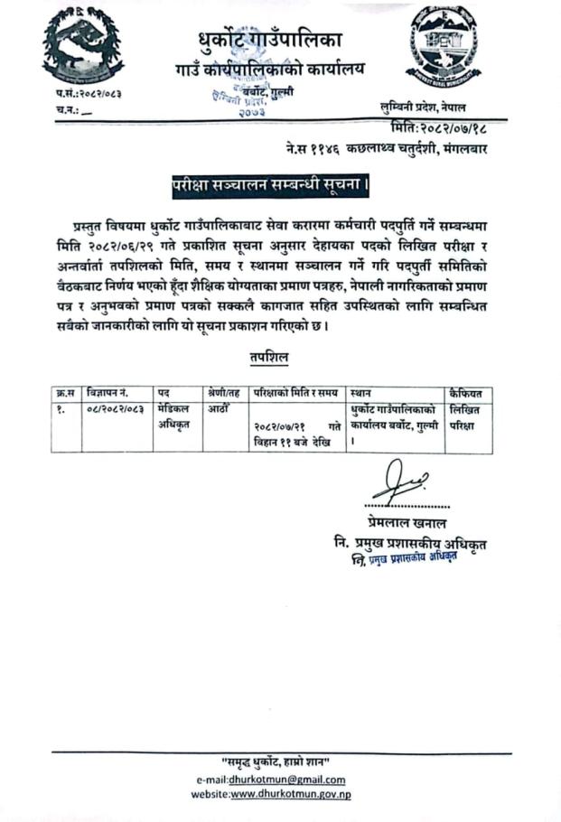 सेवा करारमा कर्मचारी आवश्यकता सम्बन्धी सूचना (१०/०८२/०८३)