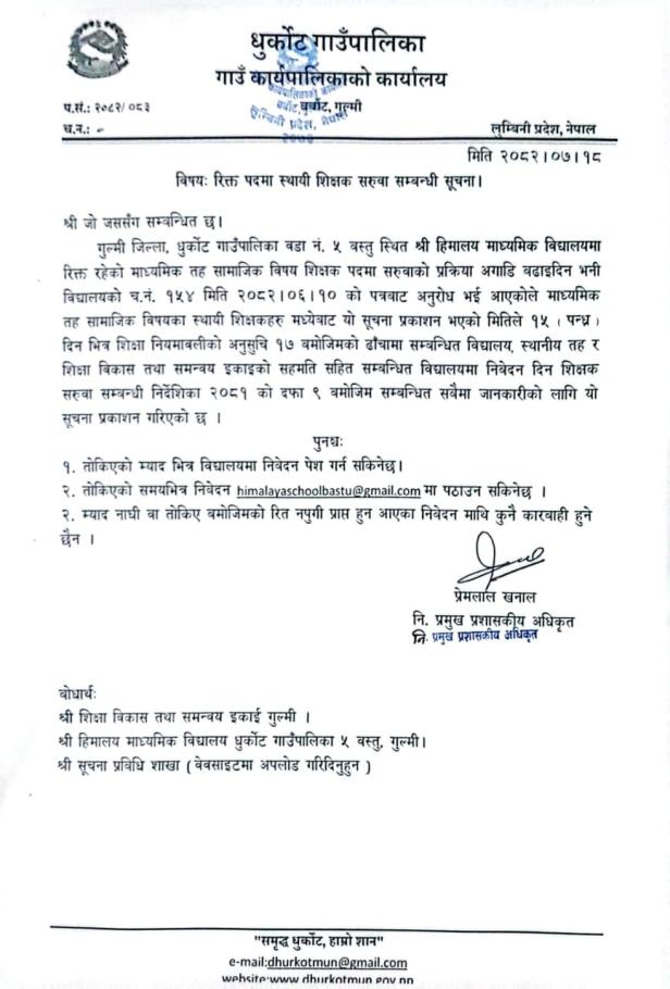 रिक्त्त पदमा अस्थायी शिक्षक सरुवा सम्बन्धी सूचना ।