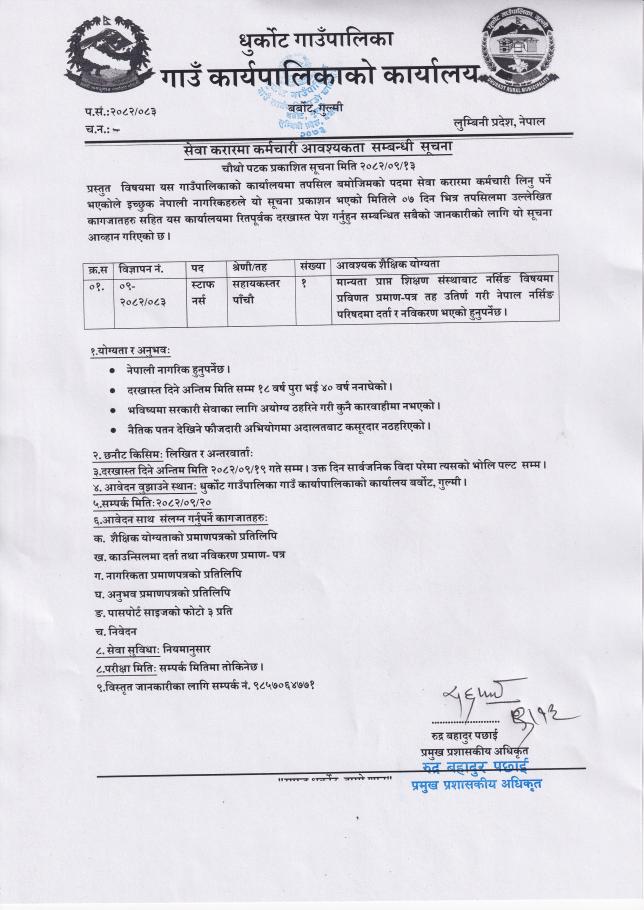 सेवा करारमा कर्मचारी आवश्यकता सम्बन्धी सूचना । ( वि.नं. १६/०८२/०८३ )