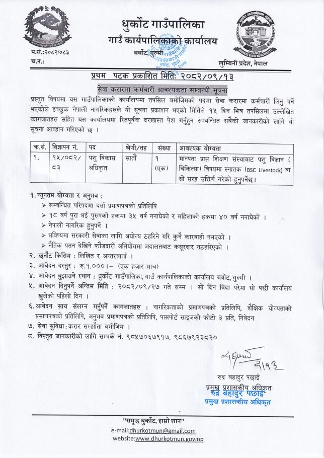 सेवा करारमा कर्मचारी आवश्यकता सम्बन्धी सूचना । ( वि.नं. १६/०८२/०८३ )